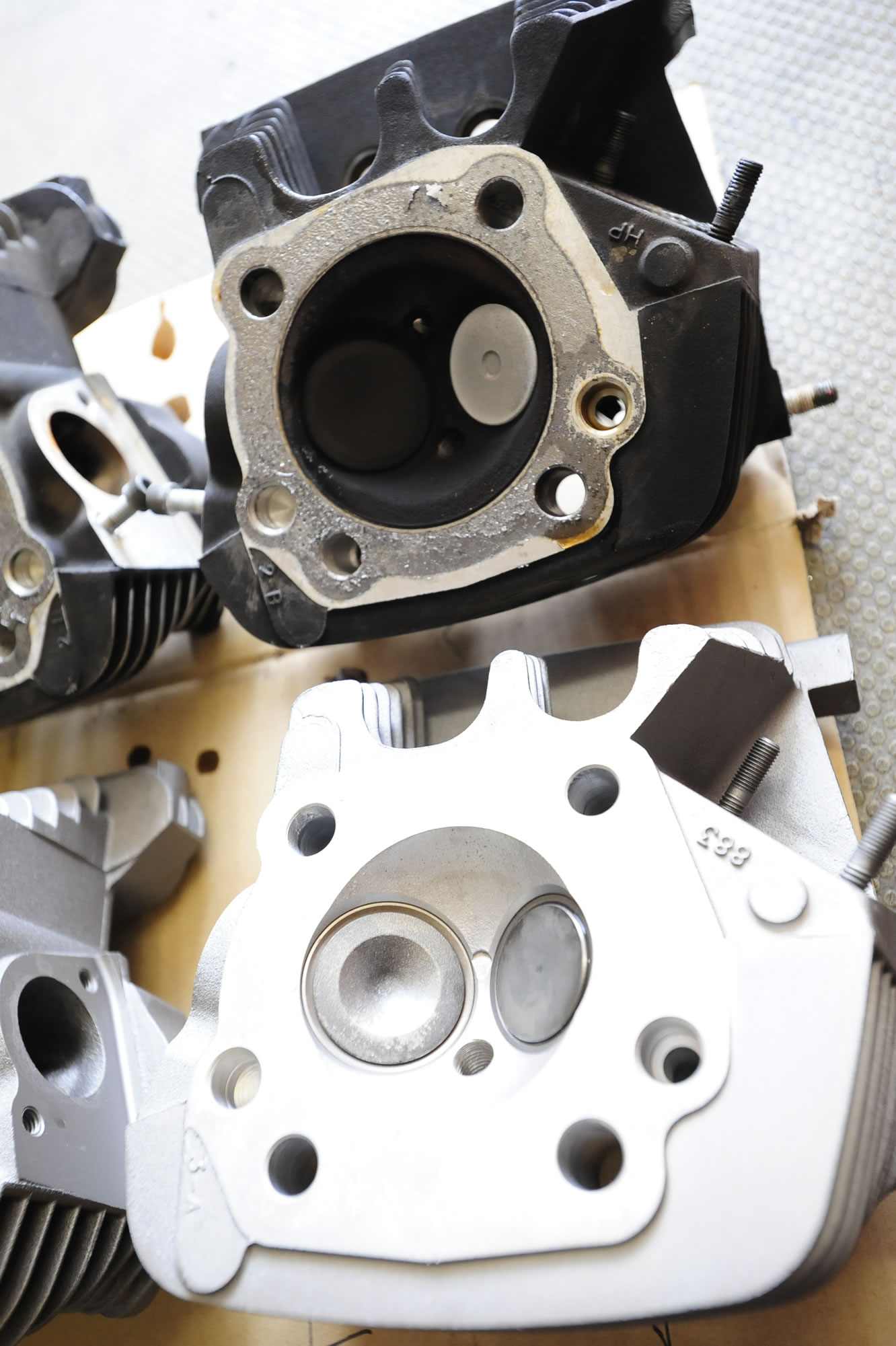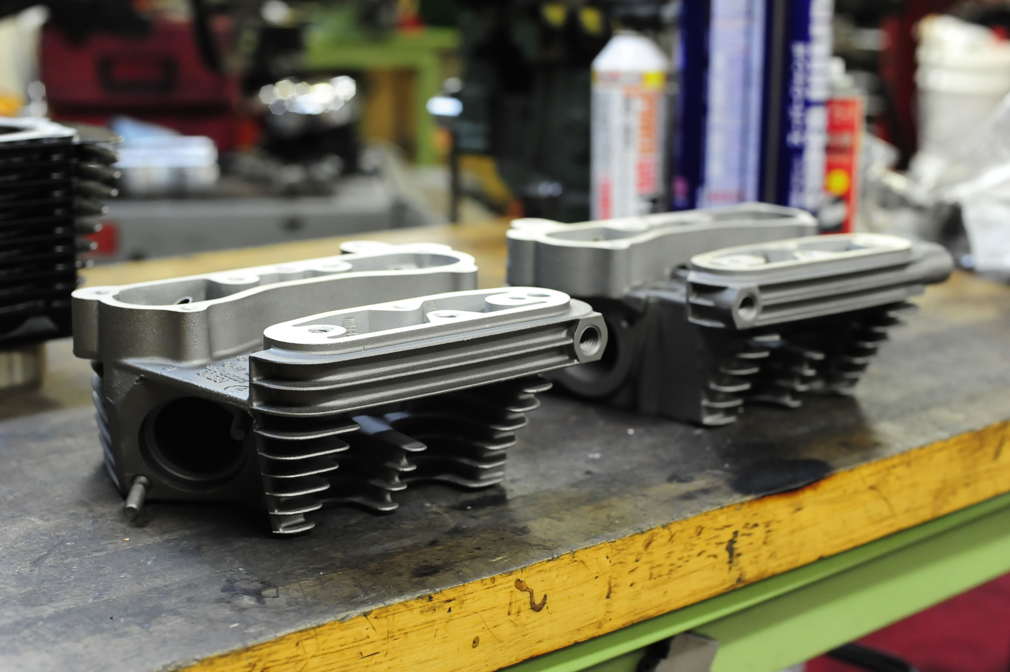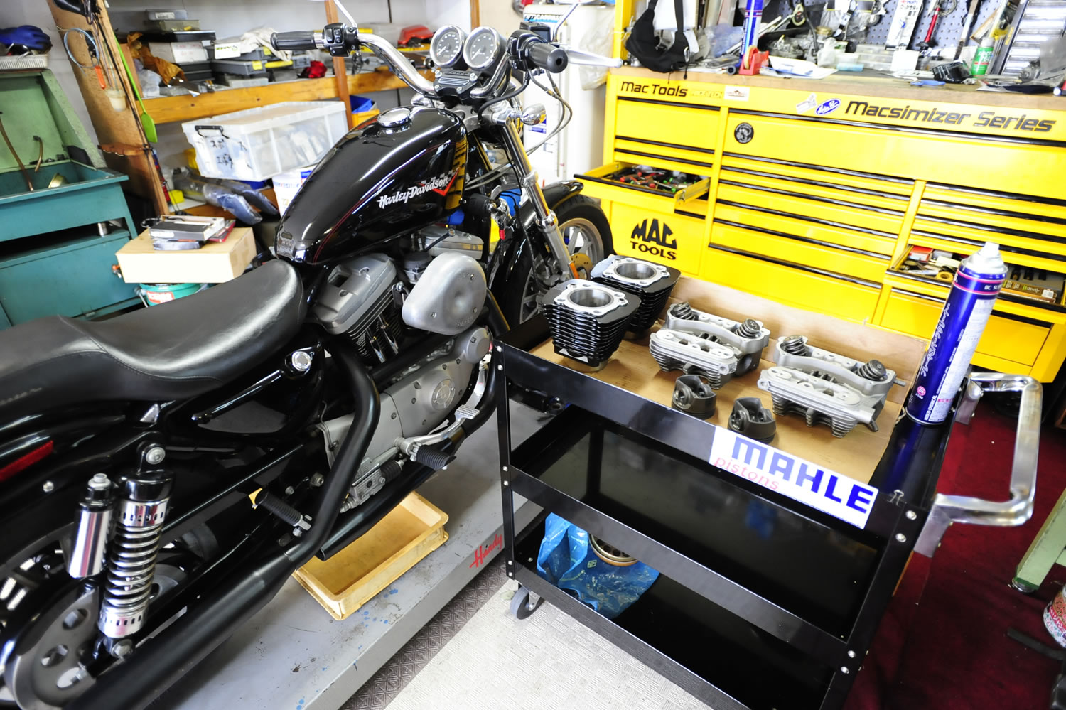 883からのボアアップであれば、元々ある883の各部品の加工のみで良い。ところが、1200からのボアダウンとなると、そうはいかず、シリンダーとシリンダーヘッドの部品が必要となる。