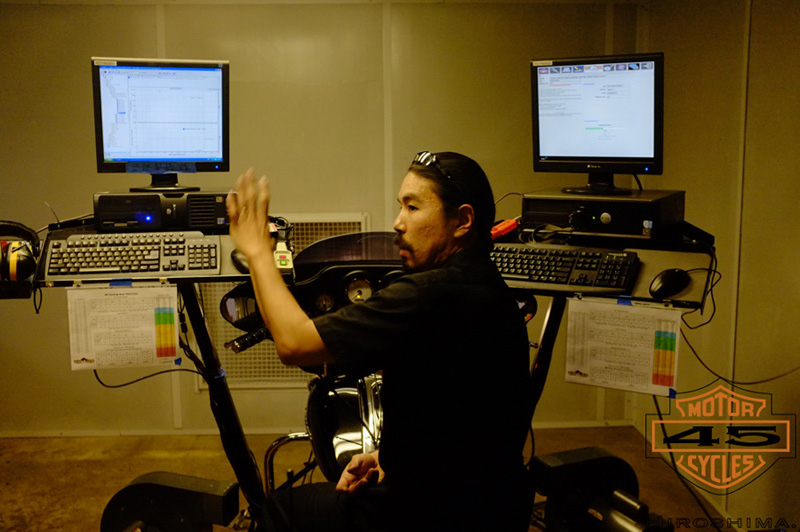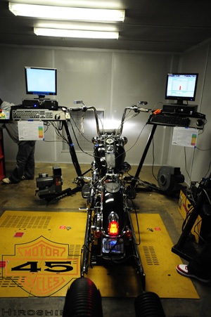 そして、必要な道具を完備し、フル装備されたダイノ(シャーシダイナモ)は、測定対象(バイク)への負荷・負担が少なく、