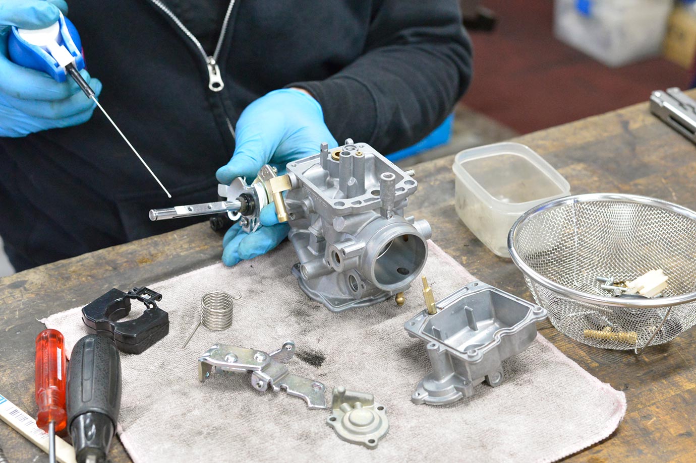 当店に到着後、注文書を確認・キャブを分解します。4.加工作業
