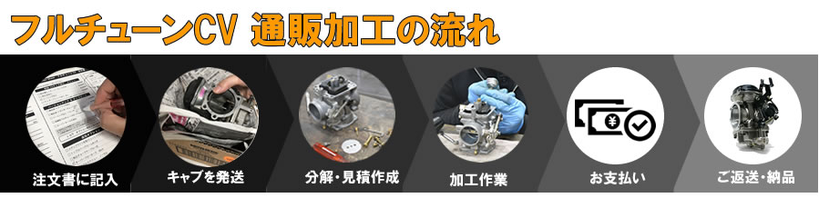当サービスはキャブレターにご注文の加工や分解整備を施すものであり、取付やセッティングに関するアドバイス・技術的なサポートは付帯しません。