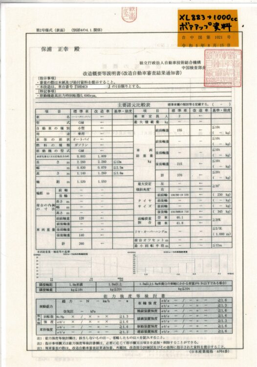ボアアップをすることで併せて行う改造申請がより容易に行えるよう、 遠方のお客様や業者様へ向けて改造申請の通販をご用意しました。簡単かつ確実に改造申請を完了していただけるよう通知書渡しがオプションでご案内可能です。