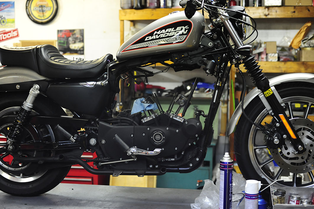 ところが、2006年スポーツスターからはその症状がピタッと収まった。オイル下がりの原因だったステムシールが変更(アップデート)された事で、オイル下がりが大幅に解消されたのです。(あくまで大幅に解消、です)