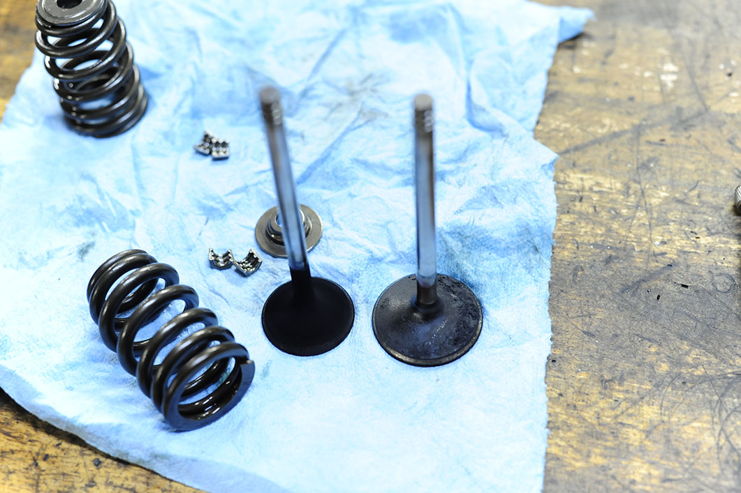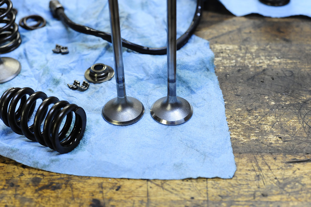 シリンダーヘッド インテーク&エグゾーストポート内と、シリンダーヘッド・チャンバー内のカーボン除去はもちろん、バルブのカーボン落としを行い、ヘッドの徹底洗浄を行う。