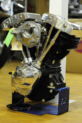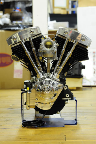 FlatHead Powerの内燃機を礎にし、S&Sの手によってさらなる実力を得るに至ったエンジンは純正ショベルモーターと同様の外観を持ちながらも、やはり現代のテクノロジーにて蘇ったもの。エンジンはストックの排気量から93キュービックインチへ排気量アップ。もちろん信頼性、耐久性、パワー、操作性すべてに於いて向上が果たされている事は言うまでもありません。オリジナルショベルエンジンの泣き所であるオイルラインの大幅な見直しでエヴォ・ツインカムエンジンと同様の仕組みにし、それに加えてローラーロッカーアームを装備しバルブトレインのロスを減少しています。