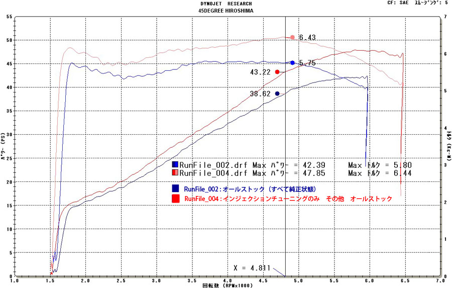 (赤)弊社TTSチューニングデーター 最大馬力 47.85PS 最大トルク 6.44kg-M