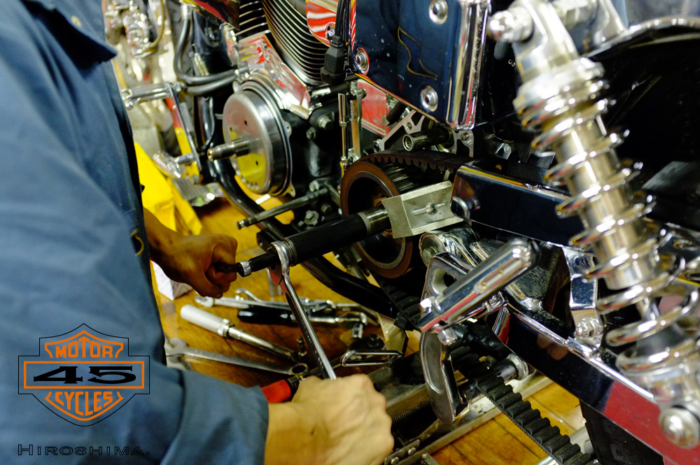 チェーン、ベルト張り過ぎは禁物です。絶対に。すべての物を「破壊」へと導く。こちらのFXDLはそれが原因で大変な事になっていました・・・。原因が判って良かったです(・∀・)