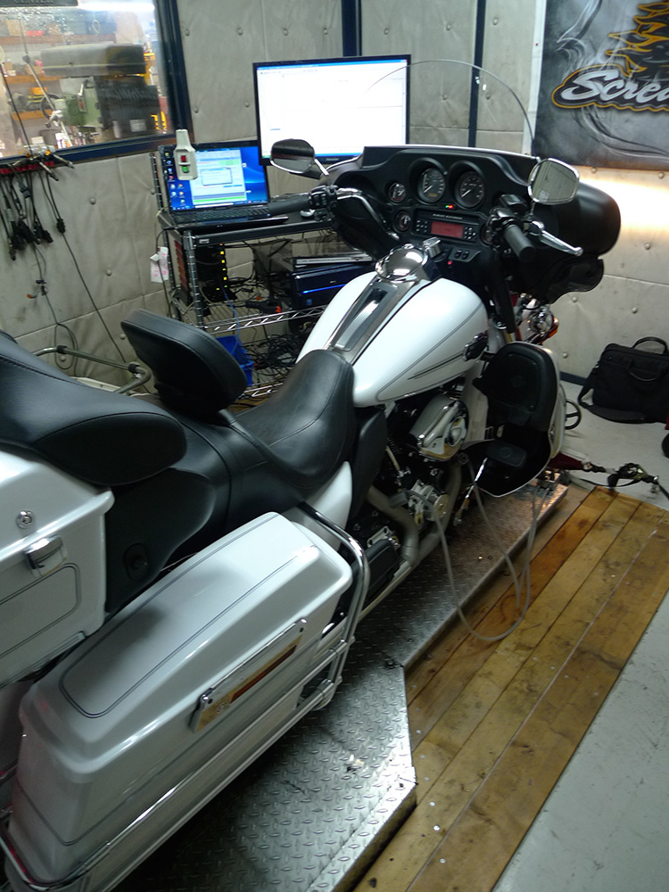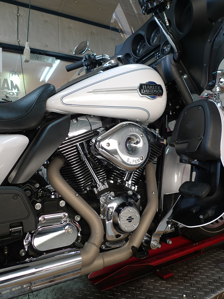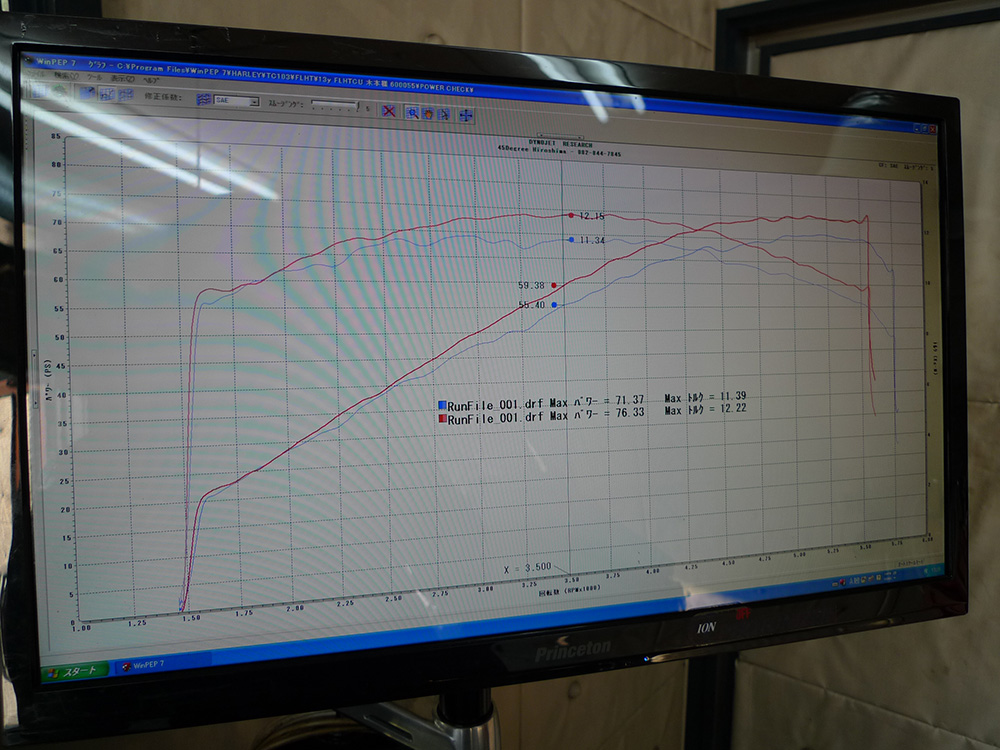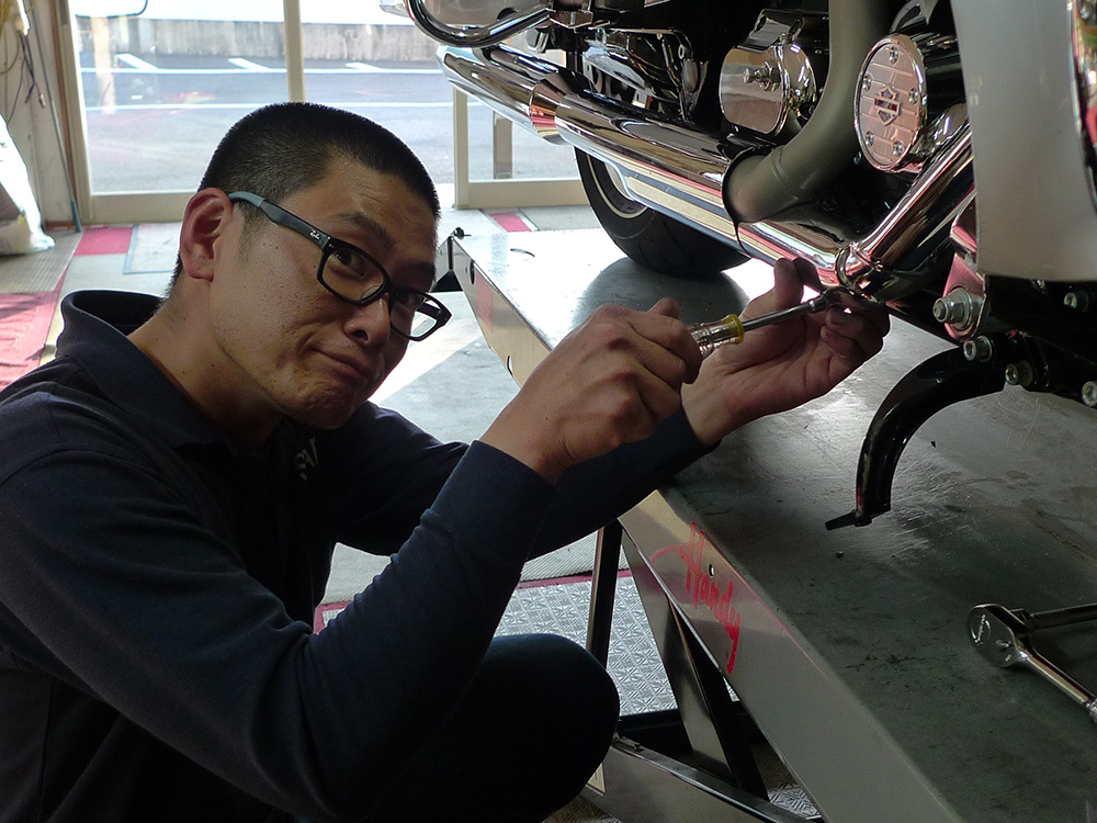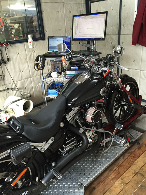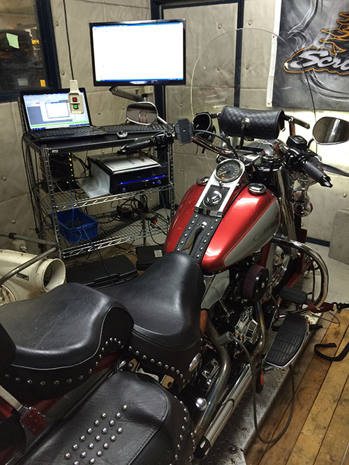 通常なら、引き続きスーパーチューナーを用いてのチューニング・・となるところ。オーナーさんのご要望のうち、ひとつが「ポテトサウンド」だったのです・・・。スーパーチューナーで、ポテトサウンド化するとマシンに不具合が起こってしまいますので、スーパーチューナーをとるか?ポテトサウンド化をとるか?どちらかの選択肢となります。