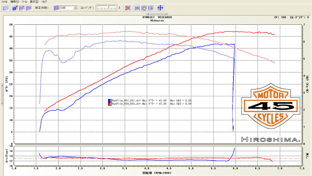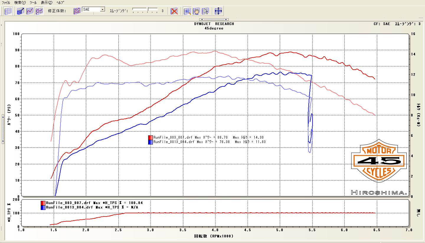 但し、45でパワービジョンやマスターチューンなどでセッティングしたハーレーに限ります。他方での事は含めていないのでご注意あれ。