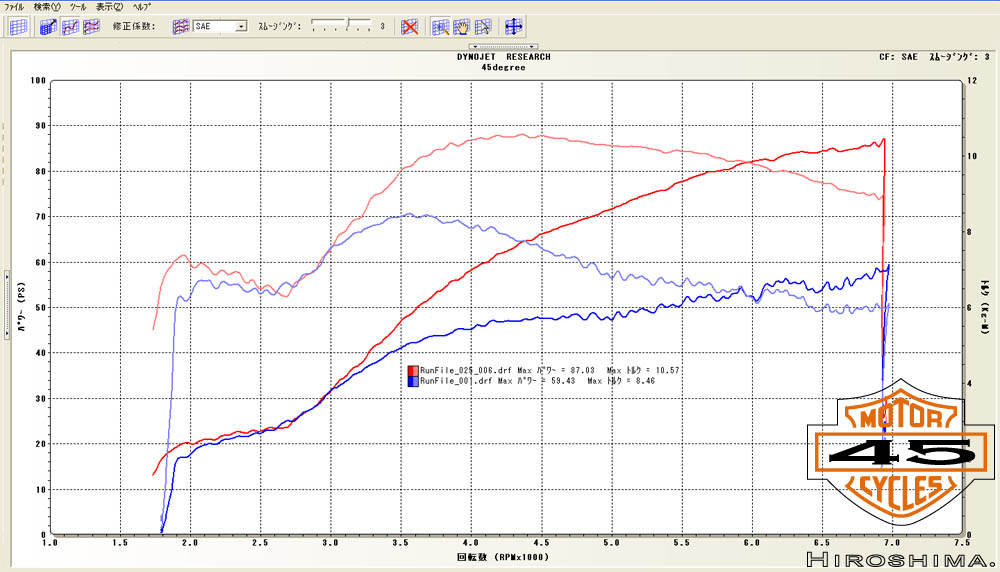 半年前の測定データーと、今のセッティング後との比較。ちなみに、今はクラッチが簡単に滑っちゃうので慎重に、慎重にフルスロットルにしています。