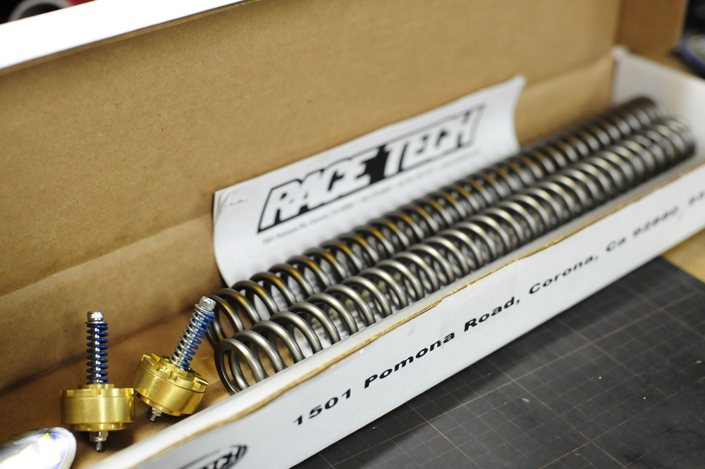 フロントフォークのレーステック・ゴールドバルブとスプリング交換。
