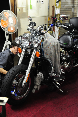 このFLSTCはカウルが取り付けられフロントヘビーなので、それらを意識し通常FLSTCに施す内容とは違うセットアップを施します。