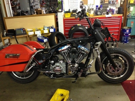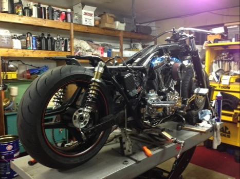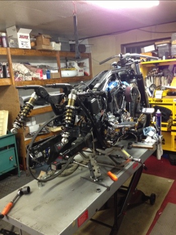 お客様のバイクが済んだ後は深夜の時間にボンネビル参戦FLTRを進めていきます。