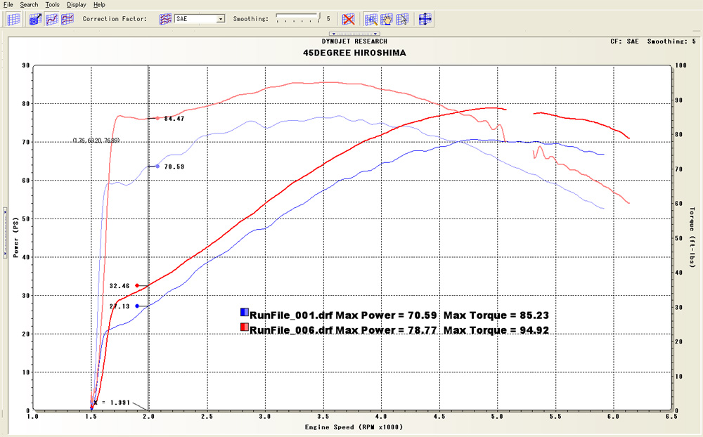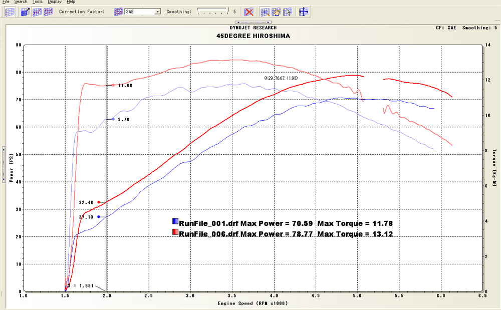 なら、前後でダイノグラフで比較してやろ〜!と載せてみますと、OPPPPPP!!!!!!!!!!!!!!