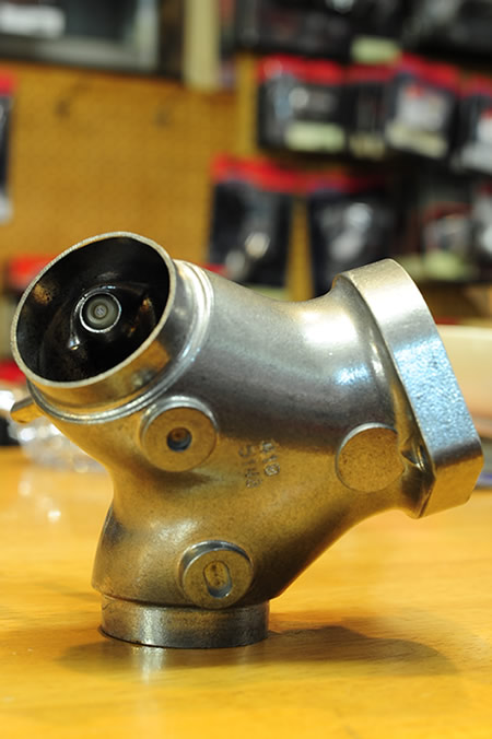 8ホールインジェクターを採用し、インテークバルブの回りを「フワッ」と交わすように細かい粒子がエンジン内に吸い込まれていくインジェクターも、採用している。これは現在、Magneti-Marelliのスロットルボディを使ってようが、Delphiを使っていようが、S&Sのスロットルボディに変更する場合は関係ない部分ですけども、Magneti-Marelliのスロットルボディを変える場合、でご紹介しました。