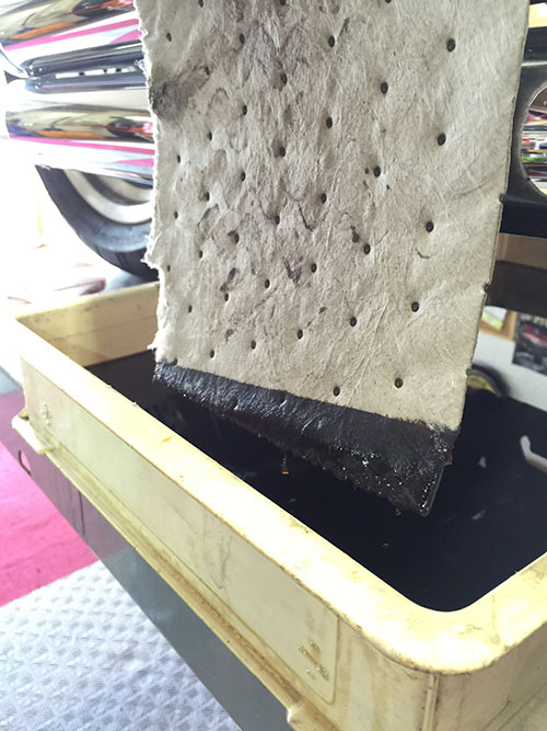 こいつです。この前大阪行って見つけたオイルを抜群に吸う、分厚い吸油マット。