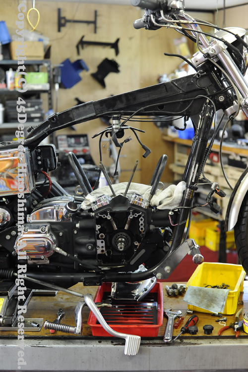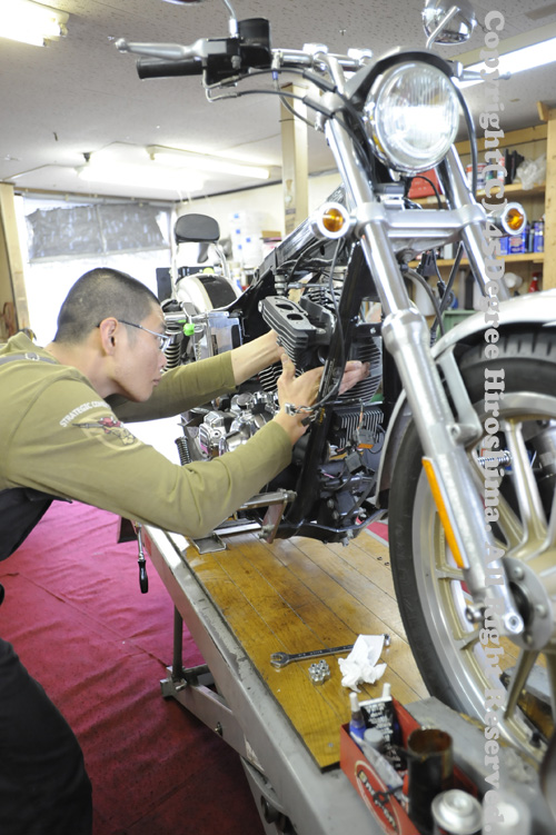 シャーシダイナモ上にてバッチリにセッティングを出した後に、実走行し、ギアーを繋いだ状態でのエンジン回転数800〜1000回転からの実用域を考慮し、高いギアレシオでも心地よくドッドッドッと、繋がるよう粗探しをして詰めの甘さを取り除いていきます・・・。じわっ・・・とアクセレーションしても、心地の良い鼓動が楽しめ、もちろん気持ちよく吹け上がるようにもなっていますし、全域で楽しめるようにしました。