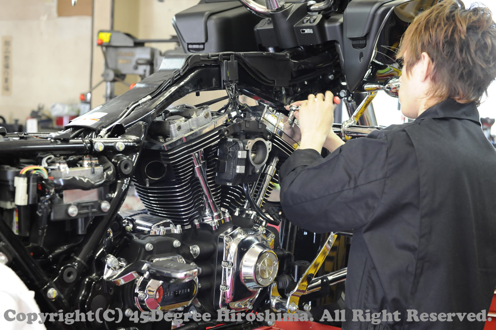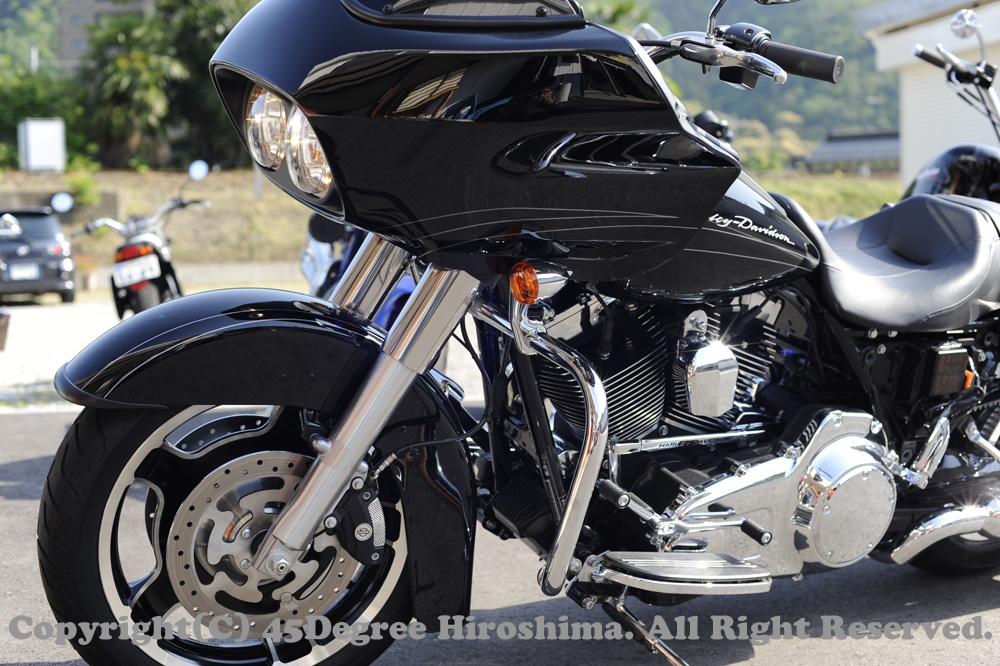 前々からギアードライブ化には興味がお有りのようでしたが、前々から乗り換え希望されていたロードグライドになってからの、ギアードライブ化になりました。初めてのハーレーではないので、その時にやりたかった事、以前も同じくしていた内容、などなどを、このFLTRXには初めのカスタムプランに組み込まれていたようです(^v^)
