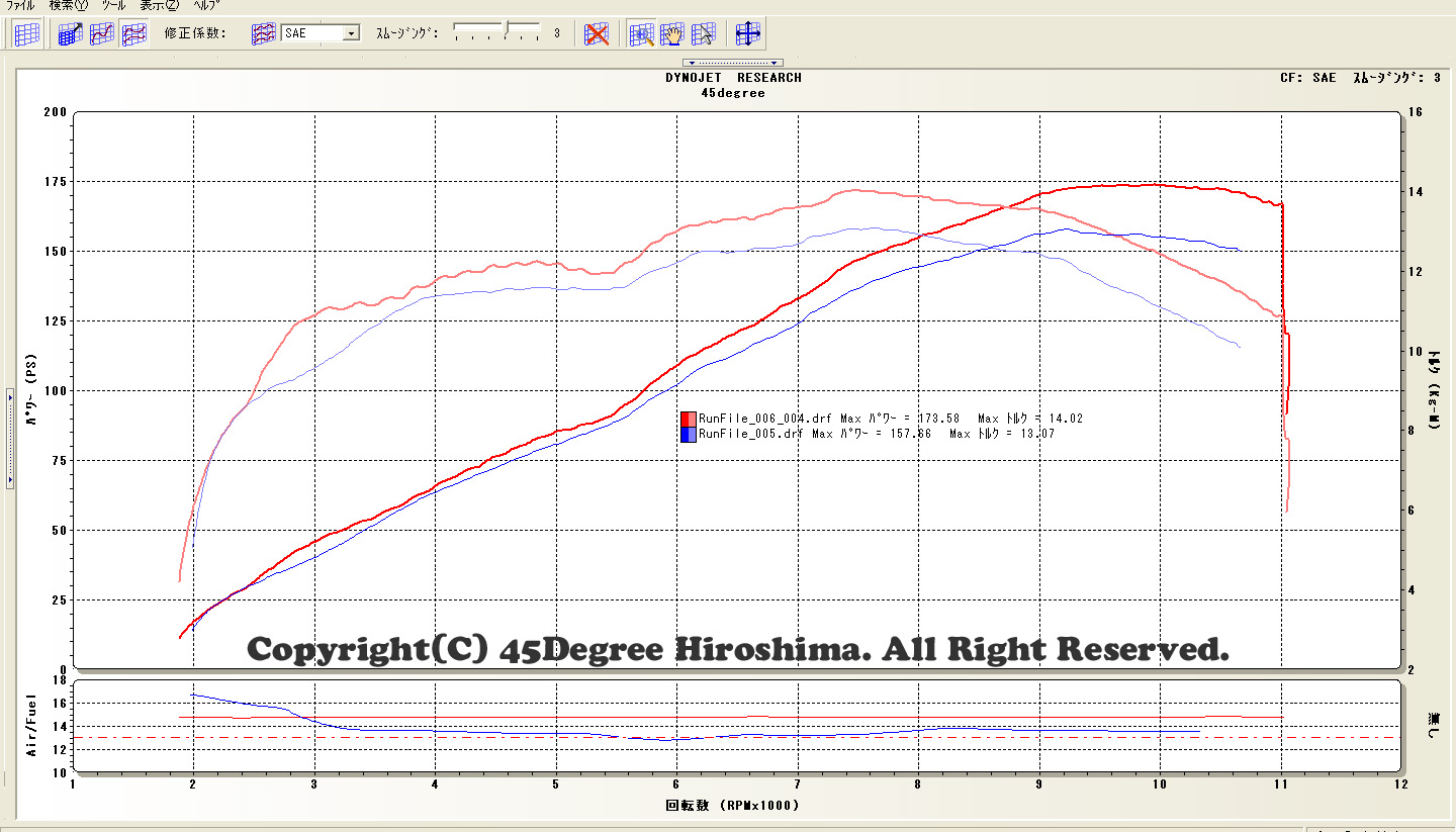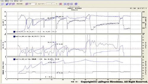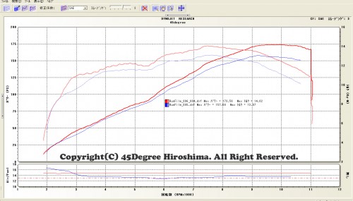赤いグラフが、純正TC96エンジン スクリーミンイーグルロゴマフラー プロ・スーパーチューナー(以前記事に載せました 参照)