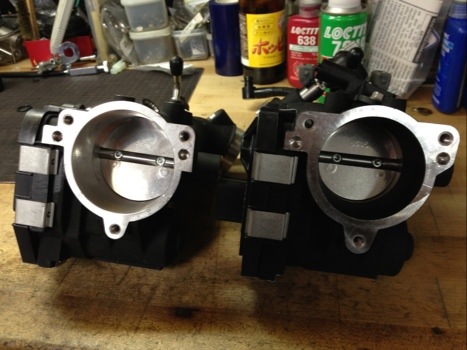 納車前からお電話にて打ち合わせさせて頂いておりました。スクリーミン・イーグル 58mmスロットルボディを組み付けて自走〜という予定でしたが、いくらインジェクターサイズが変わらないからと言っても、ちょっとそれはマズいですよ〜とお伝えして、チューニング直前の交換となりました。