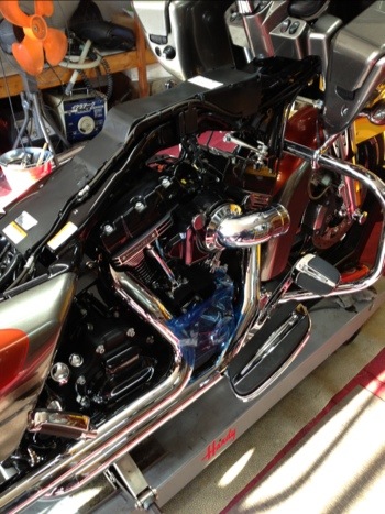 FLTRXSE納車後 エキパイ、マフラー(クリヤキン)は交換するという事で、その状態でお持ち込み頂きましたが、エキパイ、マフラーを交換した事で2000rpm以下が全く使い物にならなくなってしまったとも仰っておられました。おおよそ状況は予測出来ましたので、これで更にスロボまで変えてはマズイというので、上記の判断に至りました。条件を外すと、とてつもなく調子が悪くなるのがハーレーで採用しているインジェクションのシステムです。