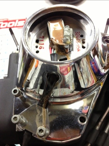 80ci ........ 1340cc, Evolution,エヴォリューション, オーバーホール, ソフテイル(FXST/FLST) 97yFLSTC 腰下分解開始 2013/04/19 Dr.マサ カムポジションセンサーが溶けてますねー ハーネス通す穴にも垂れてます カム周りをはずしてみた図 カムとブリーザーギア カムは、剥離とまではいかずとも、使用感はありますね。 ビシバシ分解を進めていきましょう ではでは マサでした。