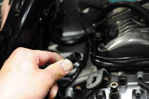 組み付け途中でついでに交換が出来るオイルホースがあったので、ついでに交換。オイルタンクからオイルフィルターへ向かう3/8オイルホースと、ドレン用のホース。