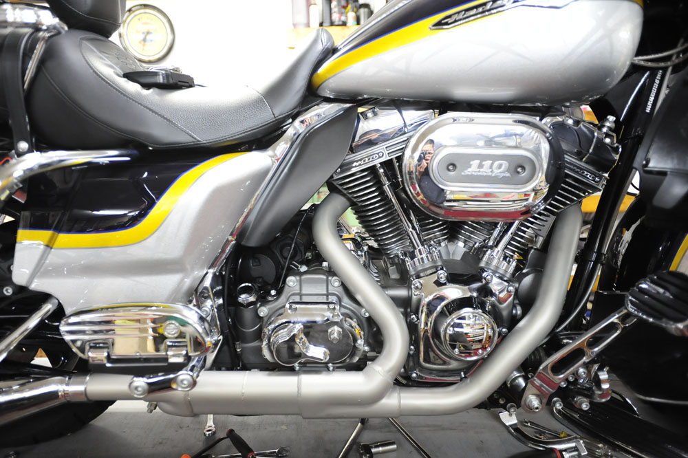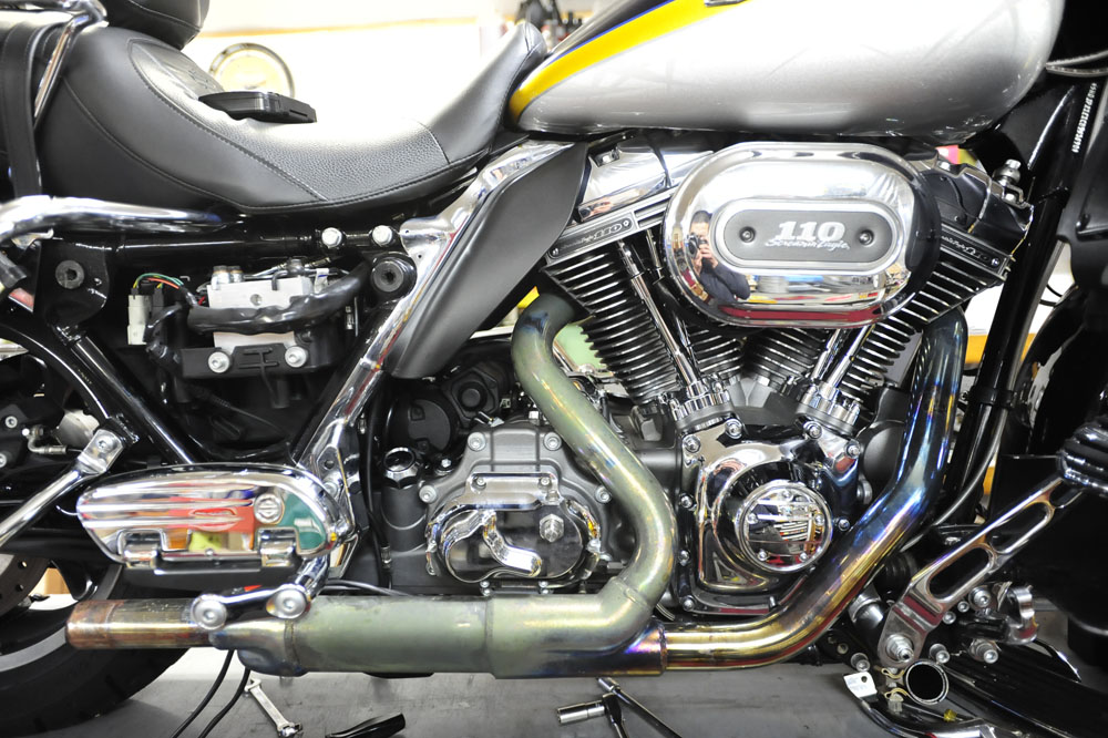 とりあえず今日のところは、ステルスヘッダーへの交換等々、V&Hのオーバルを取り付け、シャーシダイナモへ固定して、明日からインジェクションチューニングに取り掛かる段取りです。今回もデルファイECMを書き替えます。またまた、もう一台、いい感じのバイクが出来上がります。頑張りますよ〜。