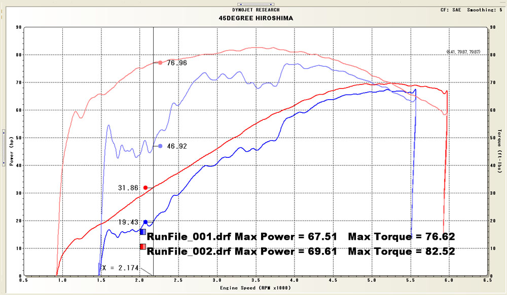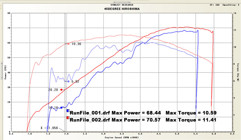 Injection インジェクション, シャーシダイナモを用いたチューニング FXDL インジェクションチューニング ”D&D Bob Cat 2 into 1″ 2013/06/15 Dr.マサ 12年式FXDLにD&D Bob Cat 2 into 1″ チューニング前後での比較です(kg−M表記) チューニング前後での比較です(フットパウンド表記) 社長!また、宜しくお願いしますね! ではでは マサでした。
