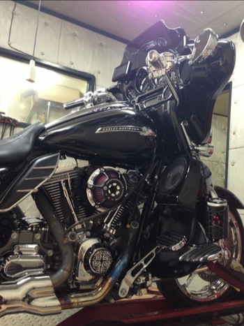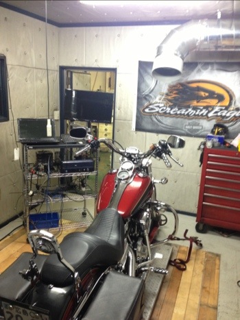 2012年式FLHXSE ワンテンエンジン。ダイノルーム改築後、初の1800ccクラスの測定でしたが、これまでとは比べ物にならない安定した測定が行えました。これなら僕のJIMS120を更にチューンして200馬力仕様にしても余裕で測定できるでしょう。まぁ、まだ走れる状態ではありませんが・・・。改めて良い仕事部屋に仕上がった事を噛み締めました。