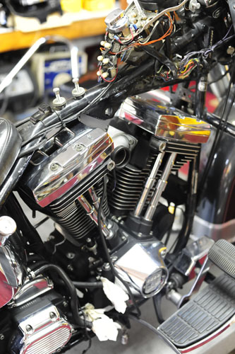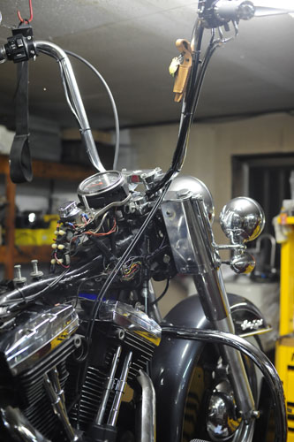 スロットルケーブルが長くてだらしないとオーナーさんご不満な様子。名誉の為に言っておきますがこのハンドル交換は弊社で行なったものではありませんので・・・。