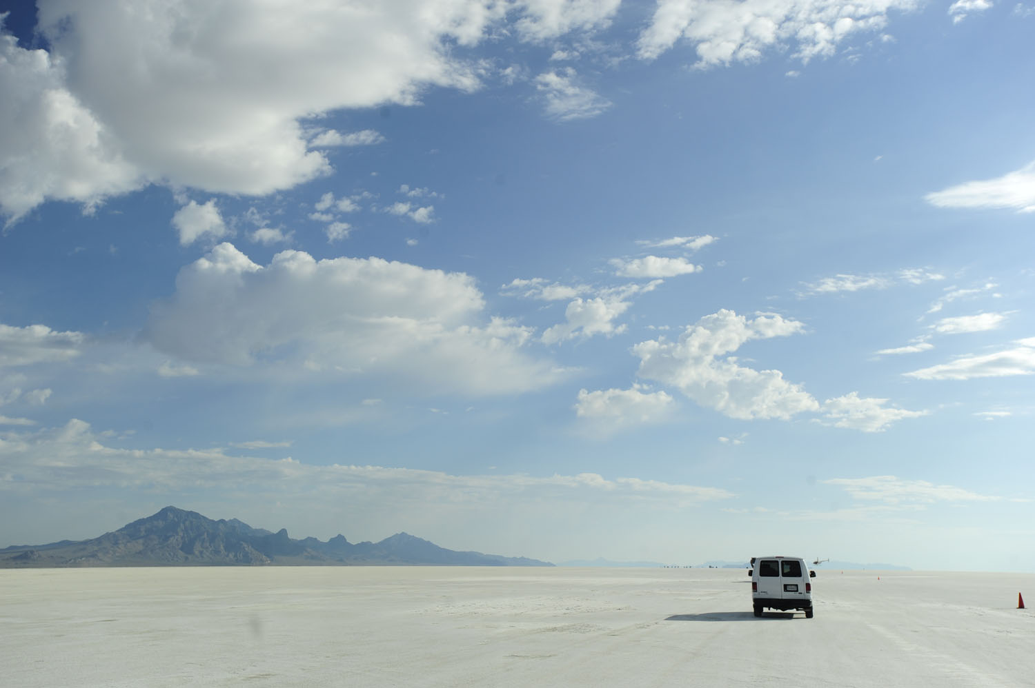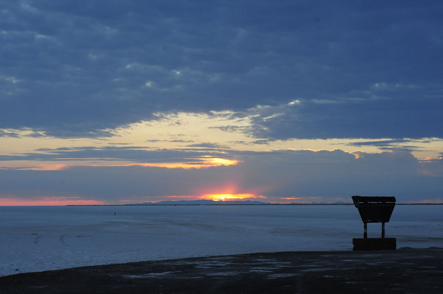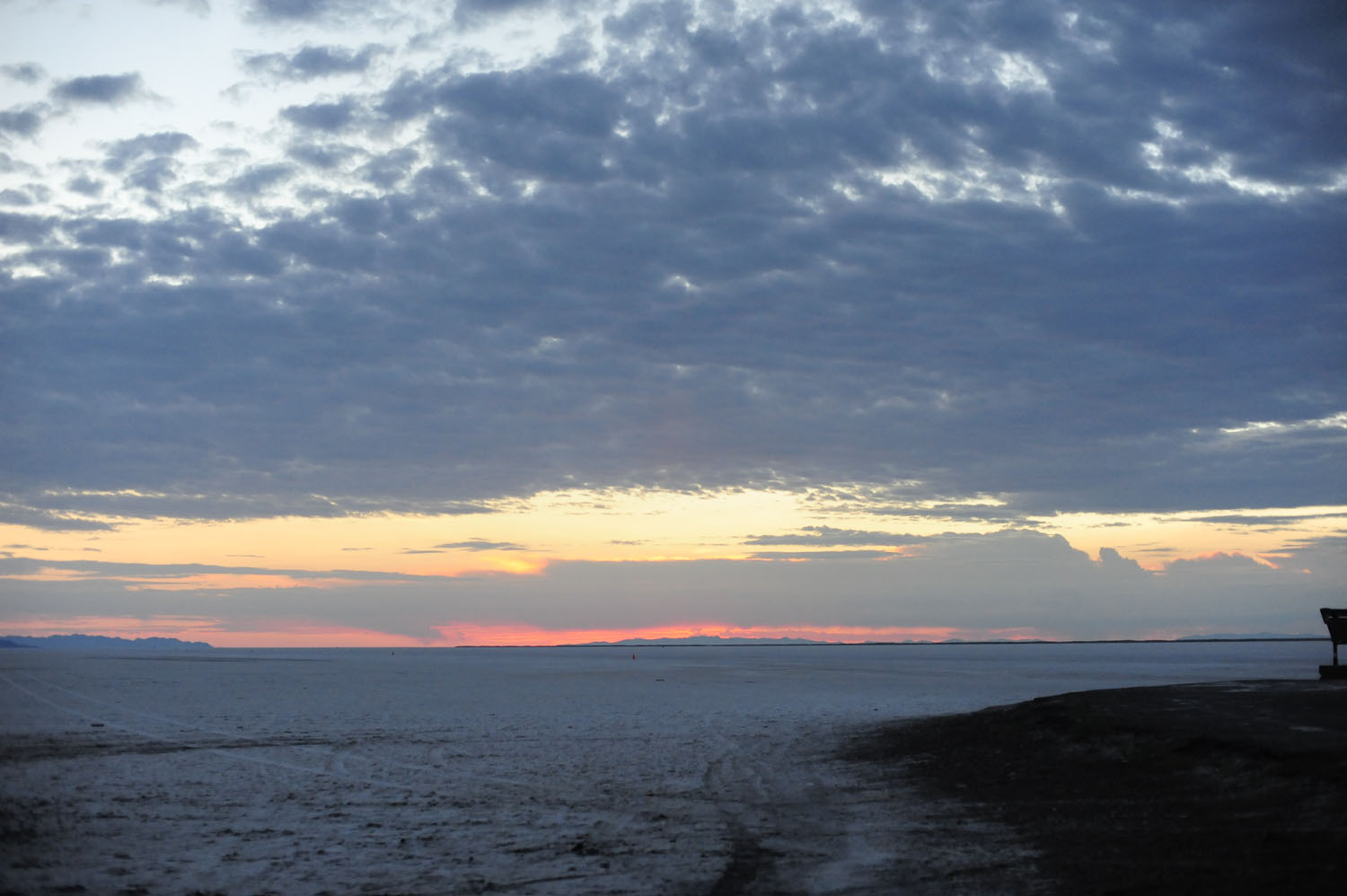 陽が昇るにつれ、白い大地が広がるソルトフラッツが明るみに。