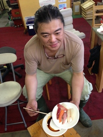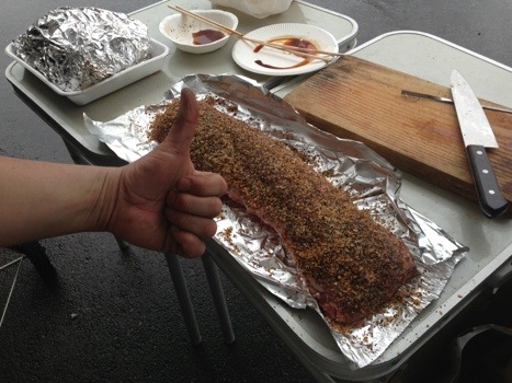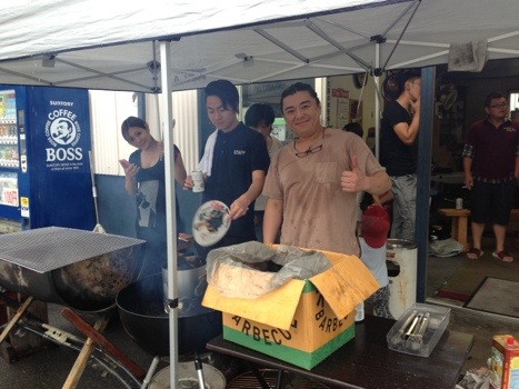 今回のBBQの変わり種がこれ。45の新スタッフのカズ君が振舞うお寿司!その場でオーダーすればすぐに握って、出来たてのお寿司食べれます。シャリが口の中でホロッと解れる具合が最高じゃ!