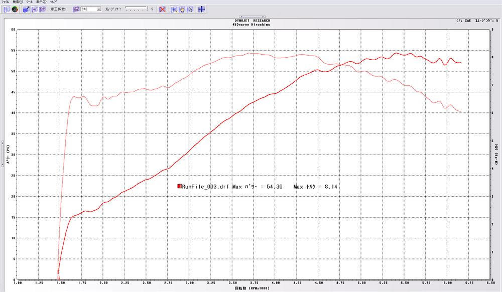 同じSlant 2 into 1で883と 883をMAHLEで1200のダイノグラフとをオーバーラップさせました。883の方はトルクアップさせる為にbuffleを改造しましたが、883をMAHLEで1200の方はデフォルトのbuffleでこの結果。大体想像していたとおりの違いですねェ。このグラフを待ち望んでいるYさんへお届けしまッス♪♪