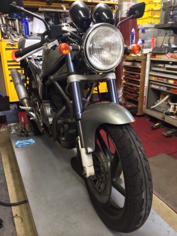 水曜日はグースのフォークシール交換からです。350グースのフォーク径って39ミリなんだね。