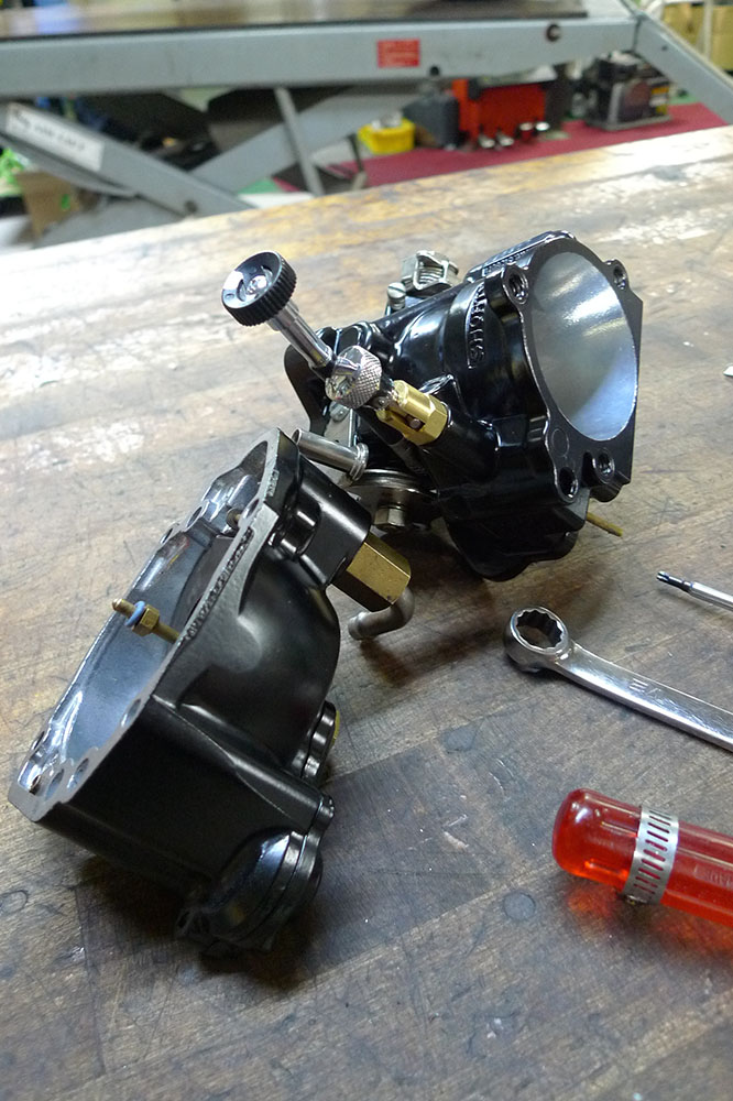 45からお知らせなど S&Sキャブを黒く引き締める! 2014/06/13 Dr.マサ 前回の記事に登場したショベルですが、早速追加のカスタム。 カスタムするのは、ここ(と、他にもまだありますが・・) 取り外しまして。 これから分解されたし。 なんと、黒くなりました。キャブレターを黒くペイントしました。 10年以上前から純正CVキャブには塗装してきましたが、同じノリをS&Sにも。 そうすることで・・?? こちらがビフォーですね。 こちらがアフターです。 黒いファンネルとの一体感が生まれて良い感じですね♪♪♪