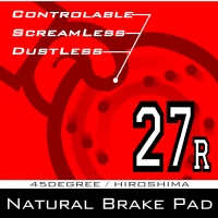 元を言うとリアブレーキパッドの摩耗で点検させて頂き、摩耗限界近いので交換した方がいいですねーとお伝えしていましたが、取り付けているブレーキパッドの鳴きが気になるんよね、と仰っておられまして。鳴きがないブレーキパッドといえば、45ディグリーで販売する27Rナチュラルブレーキパッドですね。このブレーキパッドが入荷しましたのでご入庫頂きました。