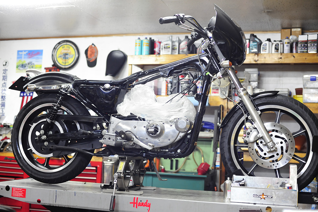 エンジン腰上分解しガレージに保管していたこのXLH883で行くこととなりました。