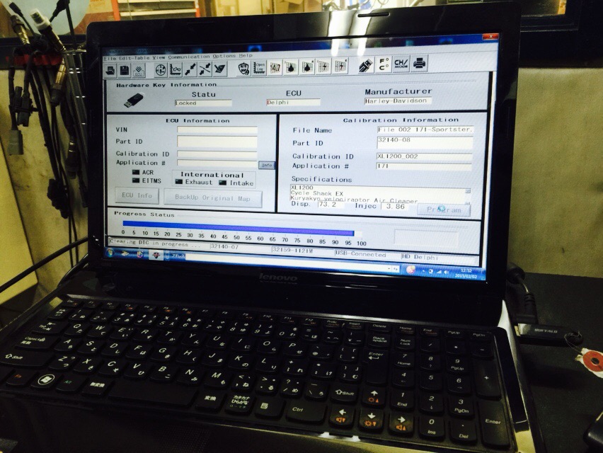 74ci ........ 1200cc, BBT ブラックボックス・チューニング, Injection インジェクション, SportSter,(XL883/1200) フラッシュチューナー・再チューニング “07y XL1200L / CX” 2015/02/14 Dr.マサ 07y XL1200L。 インジェクションのチューニングですが、その前に、その前に。点滴エンジンクリーニングを行ってからの、チューニングです。 通販型のチューニングを行っていたそうで。この度はシャーシダイナモを使ってチューニングするので、確実ですね。お店によって名称がバラバラですが正式名称はフラッシュチューナー(Flash Tuner)です。 今回はソレを使って再チューニング。 “PASS” 45オリジナルのデータ注入完了✨ 持ち込まれた時の状態がこちら。低速で走っている時のギクシャク感が記憶に残るも・・・ 45オリジナルのデータを用いダイノチューニング。 乗りやすくなった(^^)とインプレ頂きました〜♩♩♩