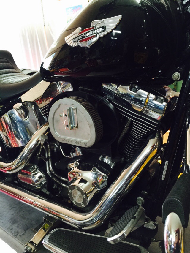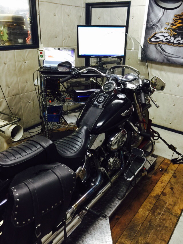 96ci ........ 1580cc, Injection インジェクション, TwinCam, ツインカム, インテーク(吸気), エアクリーナー, ソフテイル(FXST/FLST), マスターチューン エアクリ交換&チューニング -S&Sステルス- ”Y様 08Y FLSTN/JD” 2015/02/14 Dr.マサ いやぁ・・今日は暖かい1日でしたね。 でも、まだコレが恋しい時期。さんやの辛味噌ラーメン✨ またまたチューニングぅ。 2008年のソフテイル・デラックス。 車検とチューニングセットでご依頼頂きました✨ エアクリ交換・・の S&Sステルス(写真撮り忘れたので使いまわし・・Sorry!) シャーシダイナモにのせて。 ECMにポテトの素を注入✨ 整ってまいりました。 ダイノグラフ@パワーカーブ。 あと残すは車検です。来週早々車検上がりますので。 北米とポテト(^_-) ポテト仕様お好きなら45ディグリーまで✨
