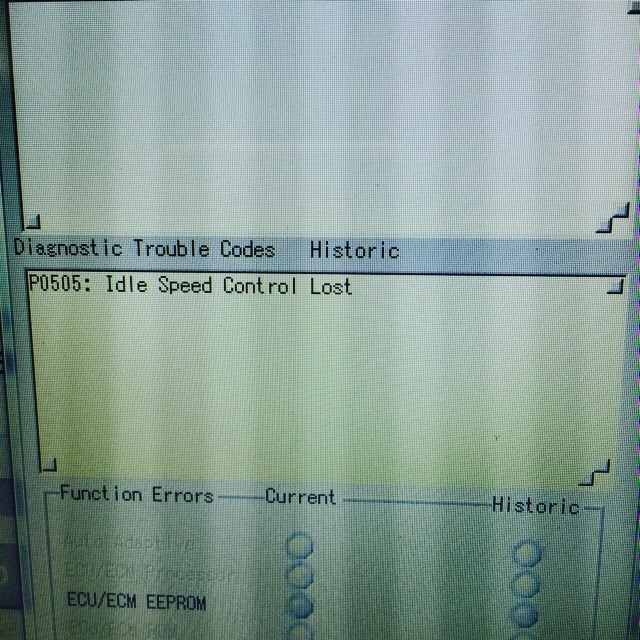診断機を用いてコンピュータ内部を覗いてDTCをみてみると、なるほど。納得のエラーコードが履歴であり。
