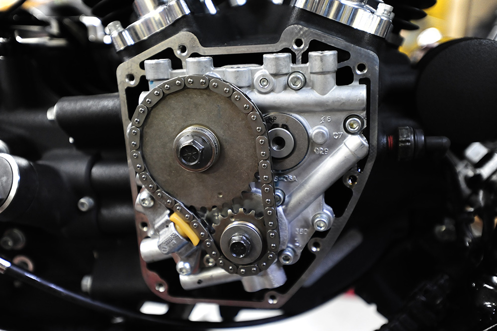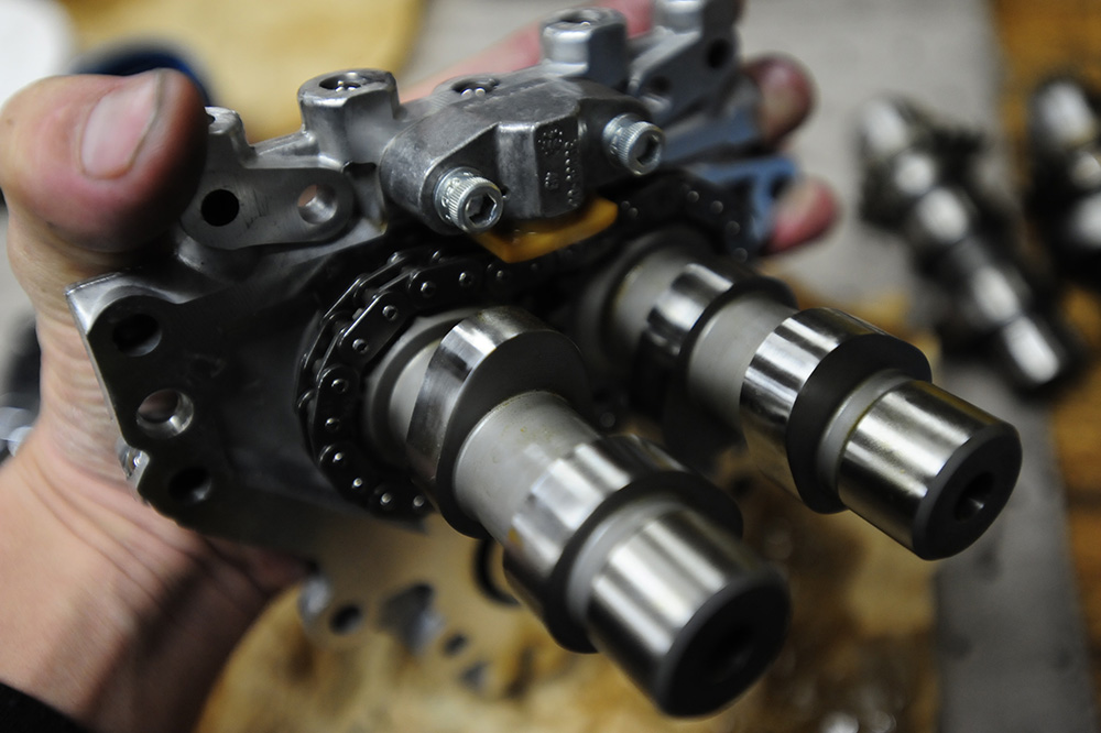 油圧チェーンドライブのまま、カム交換という内容です。RunOut値はギアドライブ化も可能な優秀な値でしたよ。