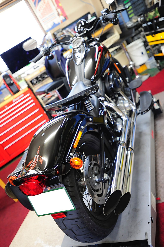 96ci ........ 1580cc, TwinCam, ツインカム, シート, ソフテイル(FXST/FLST), ボディパーツ関係 シート&フェンダー交換 / 09y FLSTSB 2016/03/21 Dr.マサ クロボン。フェンダーを純正に戻し♪ シートはシンプルなサドルシートに♪ ありがとうございましたっ!