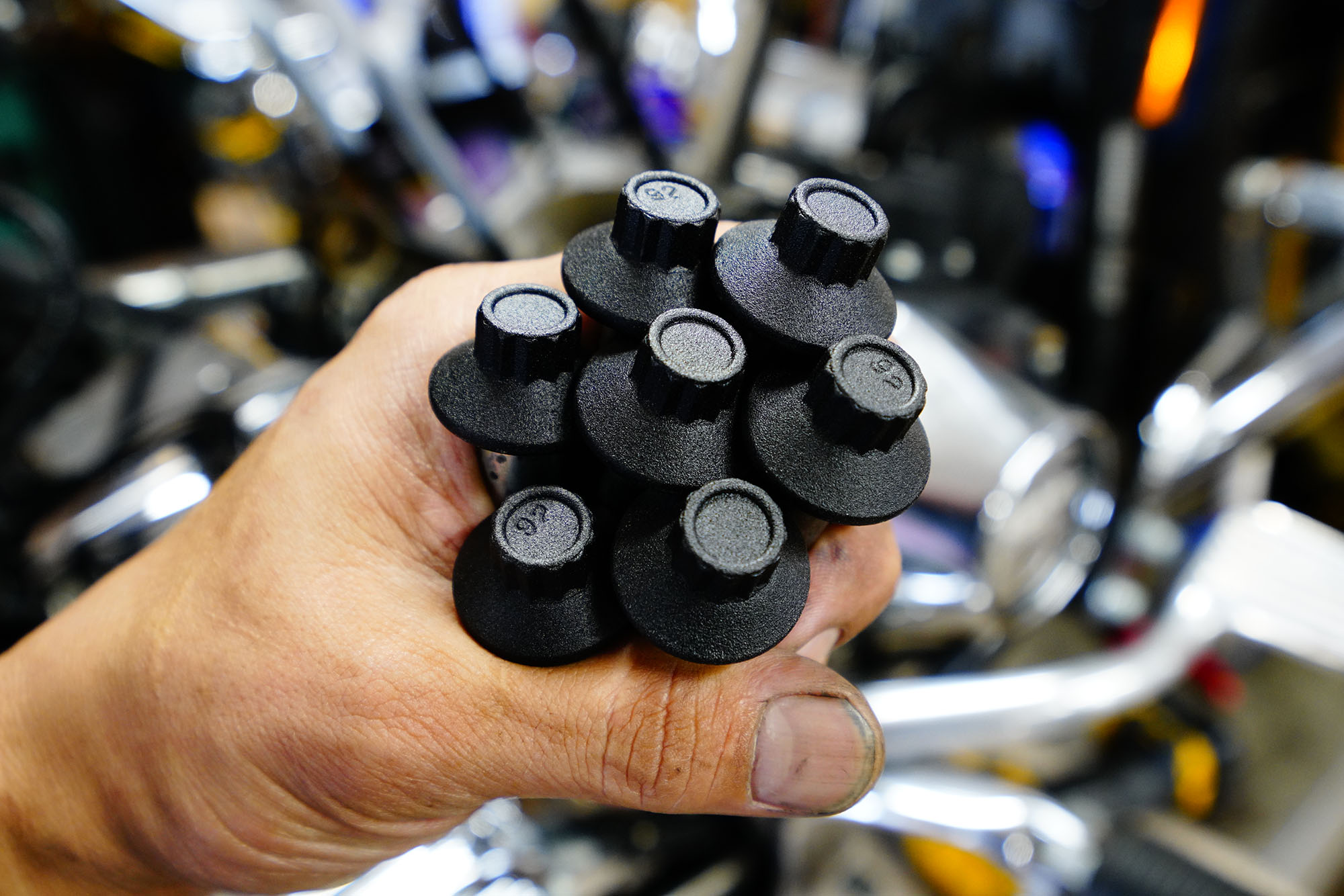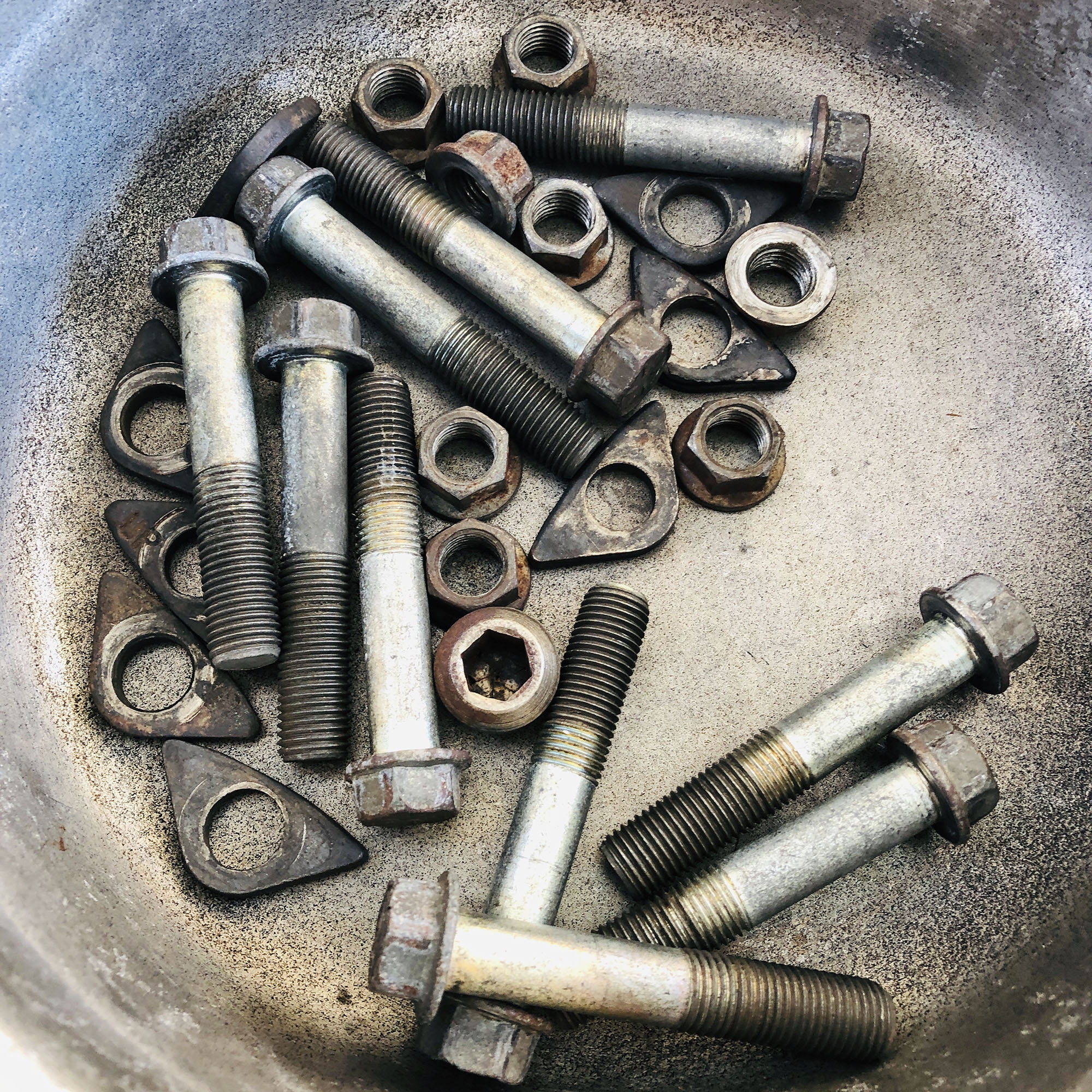ショベルのシリンダーに用いられるナットや、三角形のワッシャー。シリンダーヘッドに用いられるボルトも、腐食してサビてたりします。これを、じゃ、変えようかって、クロームメッキのものじゃチガウ!!ってなるのなら、こちらも塗りの案件でご案内可能です。こちらは、旧車に似合う、光沢はあるけども、ややフラットな質感で仕上げますよ….
