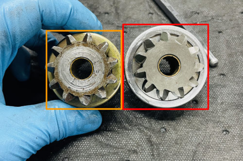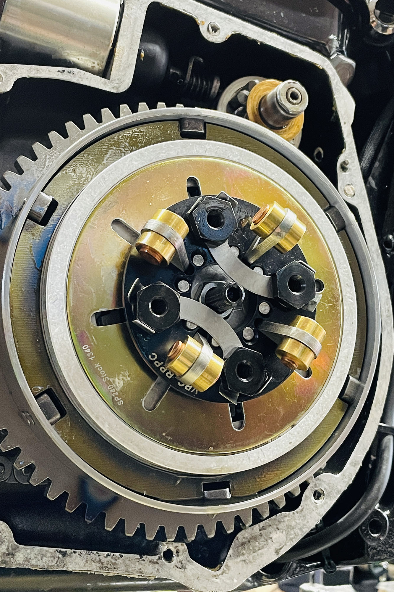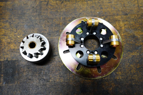 今回はこれ、スタータードライブギアを大容量化することと、VPクラッチを組み込みます。