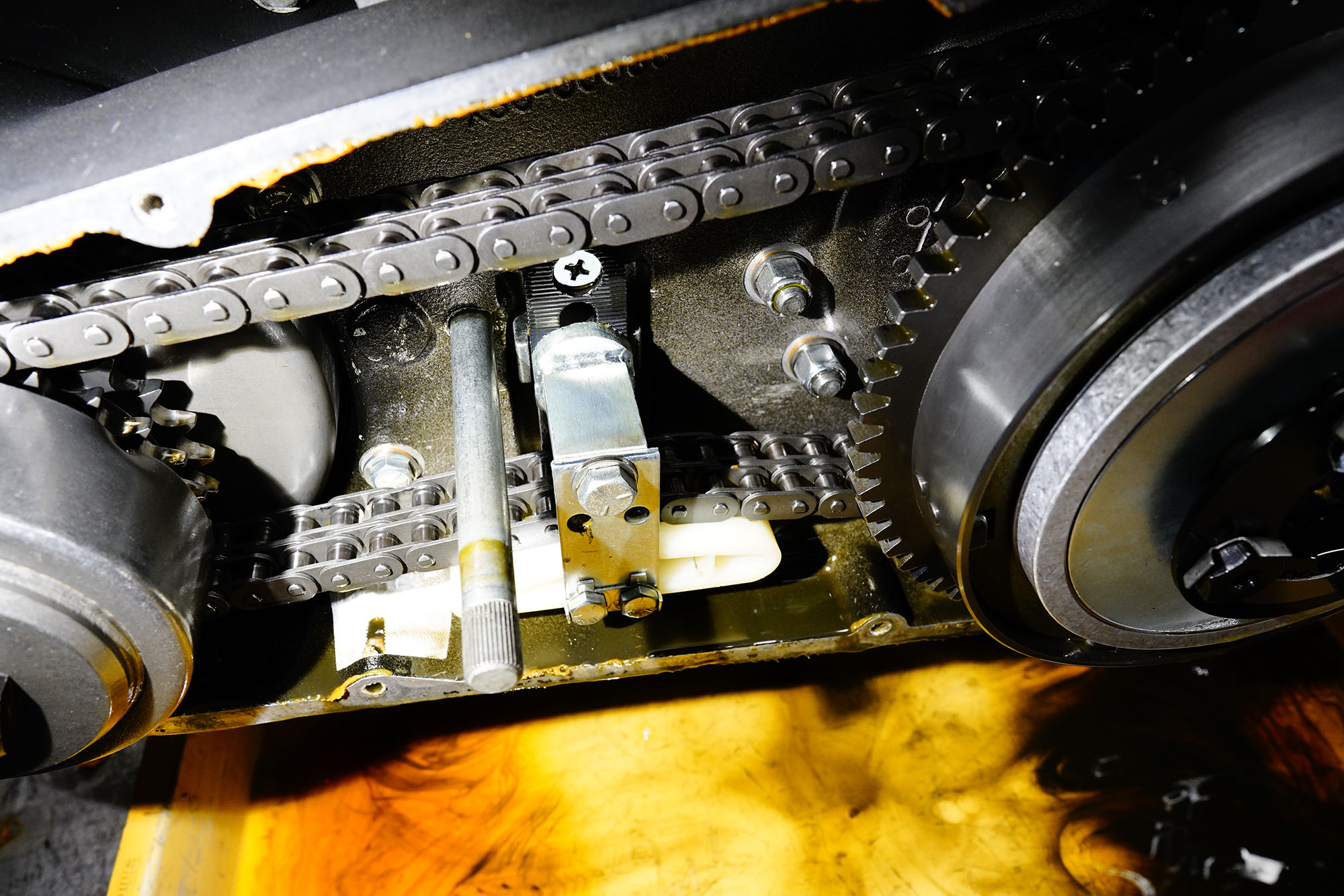 チェーン駆動に改め、更に「クローズドプライマリー加工」を施してあります。