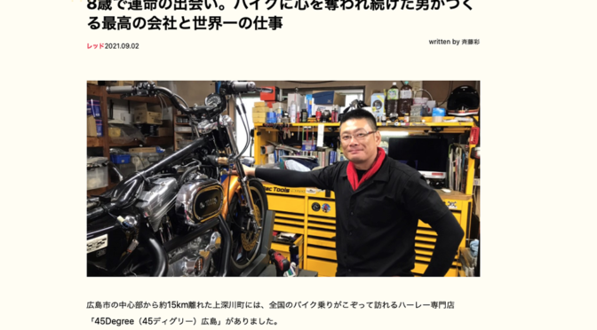 45からお知らせなど 8歳で運命の出会い。バイクに心を奪われ続けた男がつくる最高の会社と世界一の仕事 2021/11/10 Dr.マサ https://www.dashimasu.com/posts/detail/45degree01?fbclid=IwAR21lp5QbtZqgYOeUzY6_XuuTTjVNQCSRLVLcUVnO2P47VF0MQFRoCfnlZA 記事、ご覧ください! 働いてみたい!という人は合わせてこちらも! https://45degree.jp