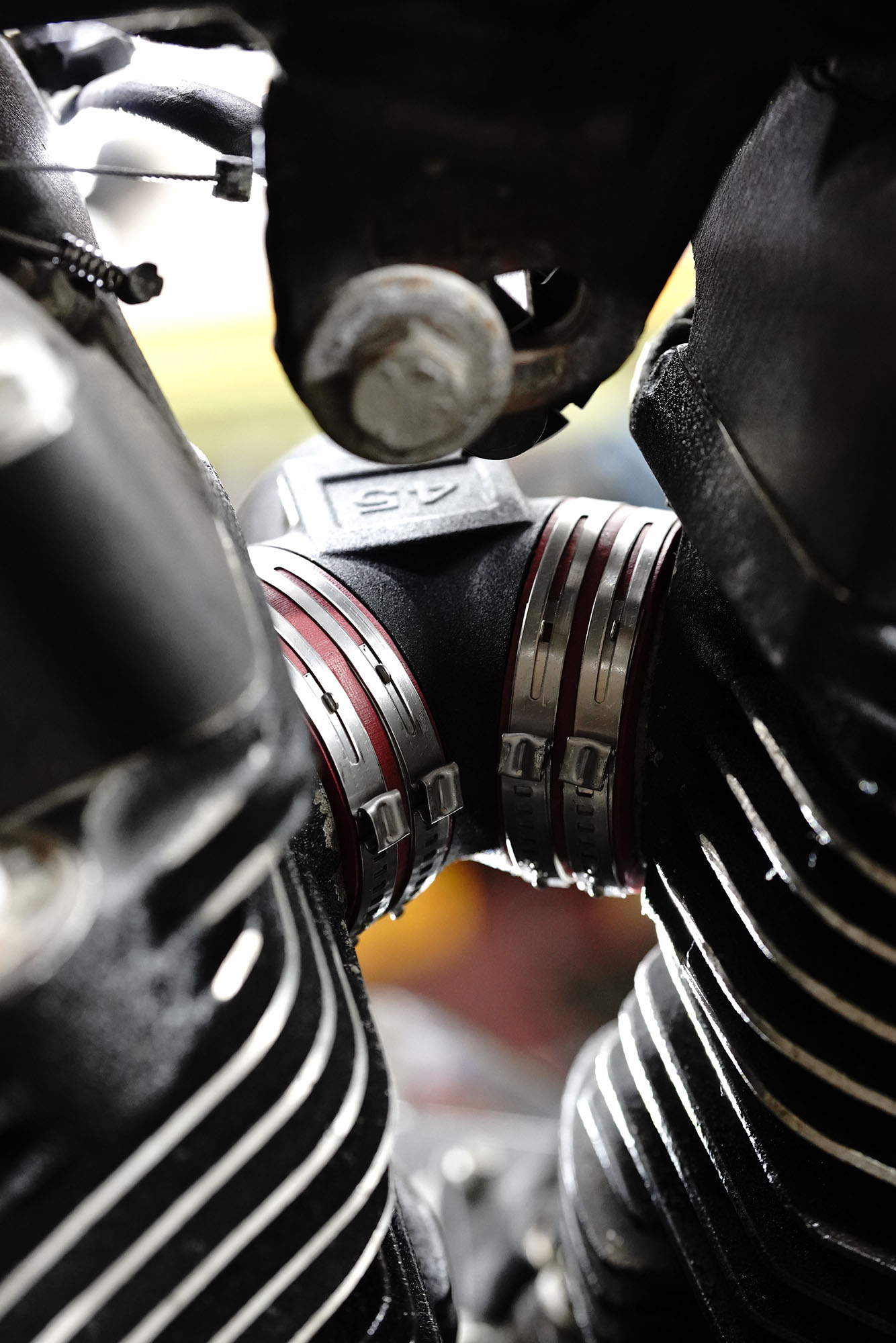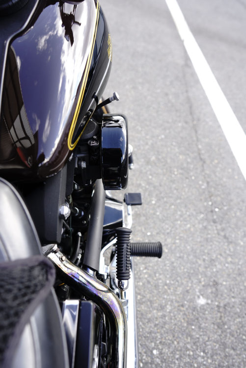 45 Velocity – MANiとCVキャブでの比較… エアクリーナーまで組みつけた状態では、こっちの方が引っ込んでるようにも見える リアブレーキの操作性も、かなり改善できました