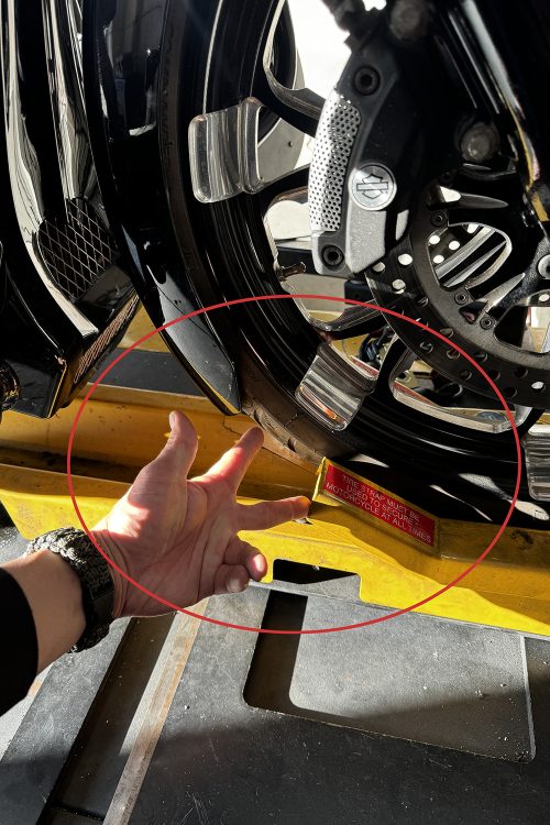 延長されたフロントフェンダーを備えている場合において、適切なクリアランスが確保できないとシャーシダイナモのホイール固定具と接触するため、NGです。