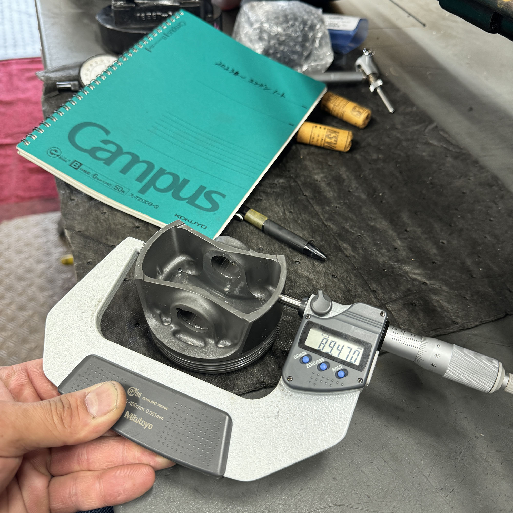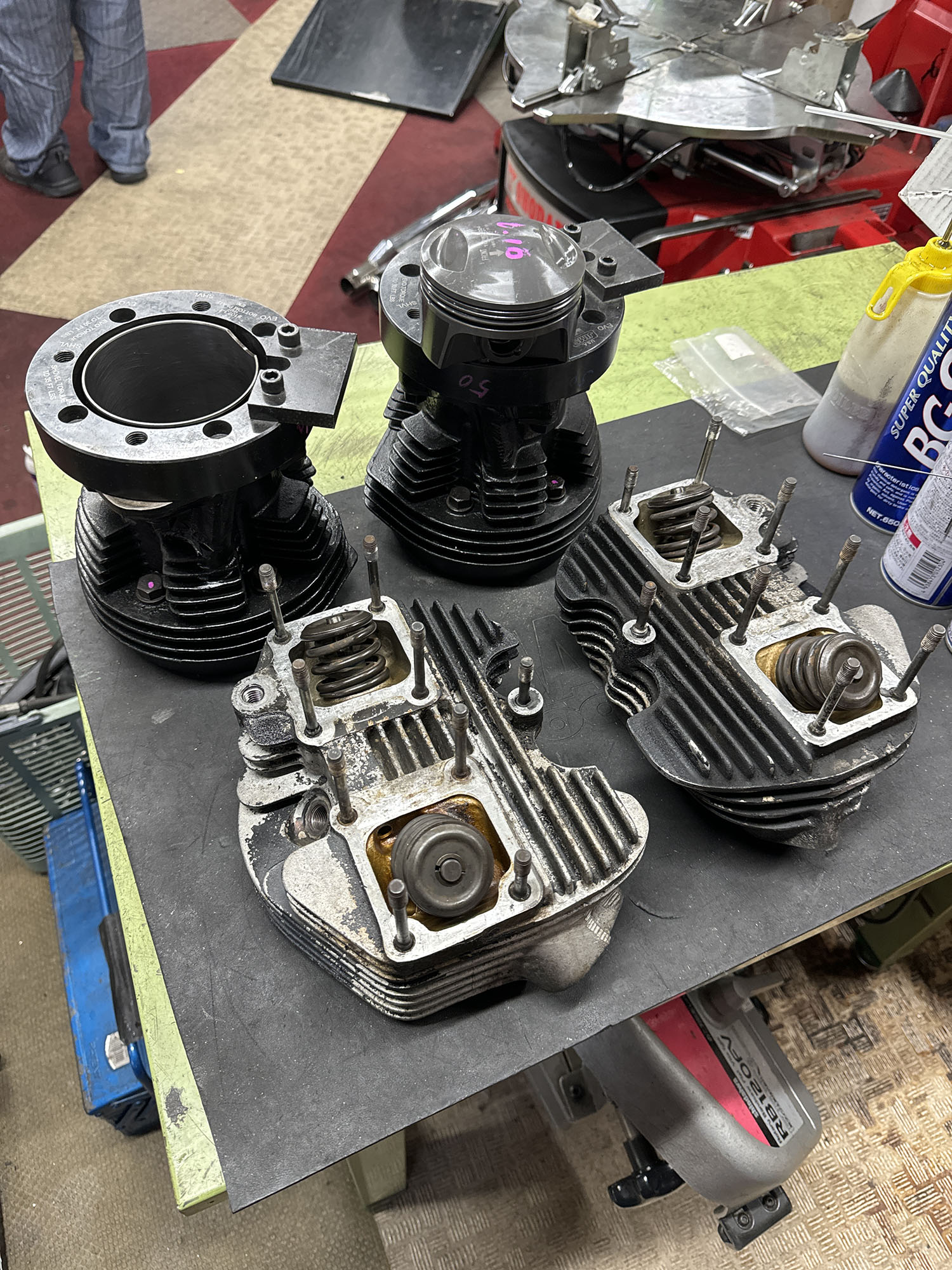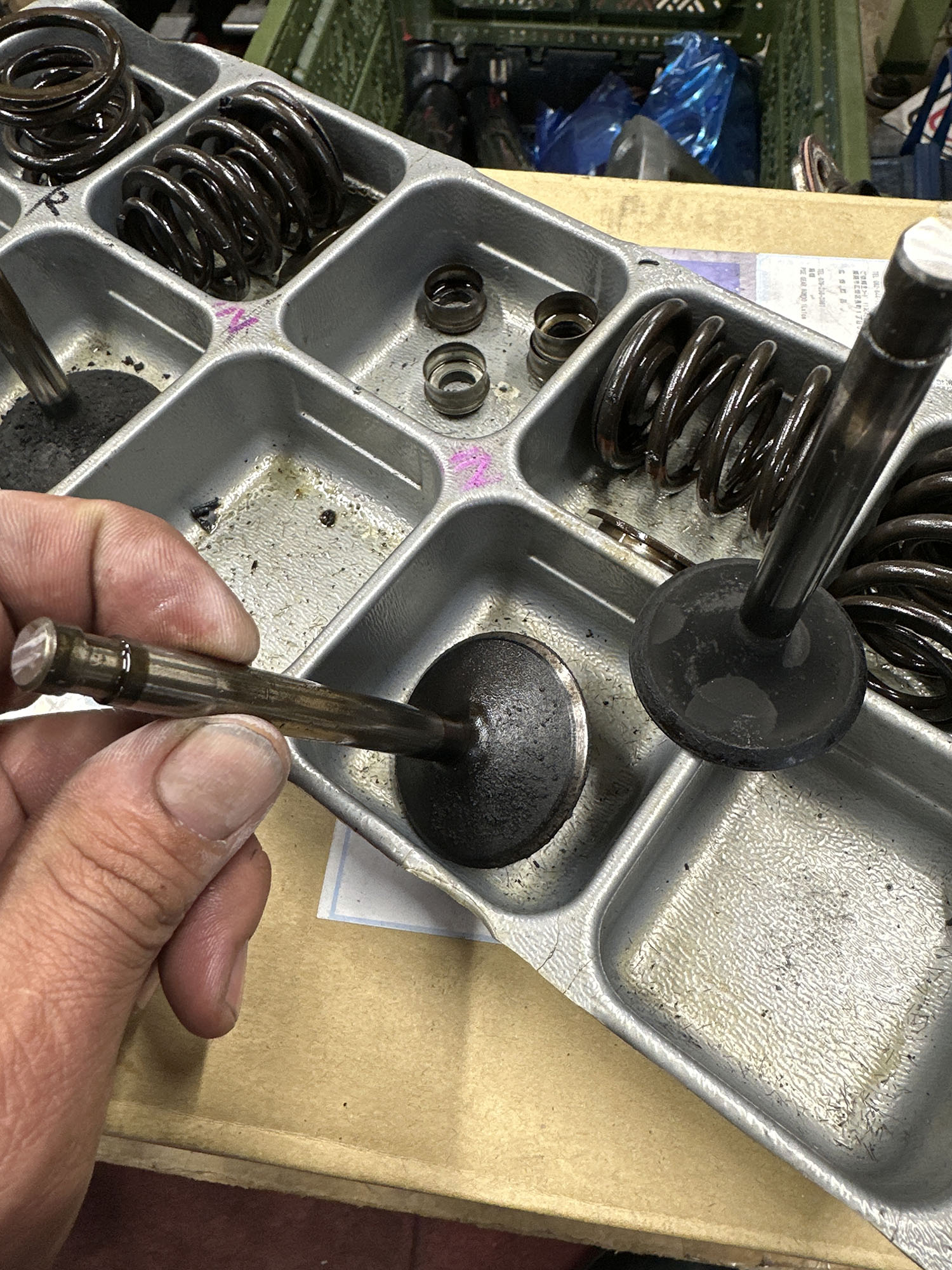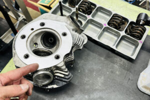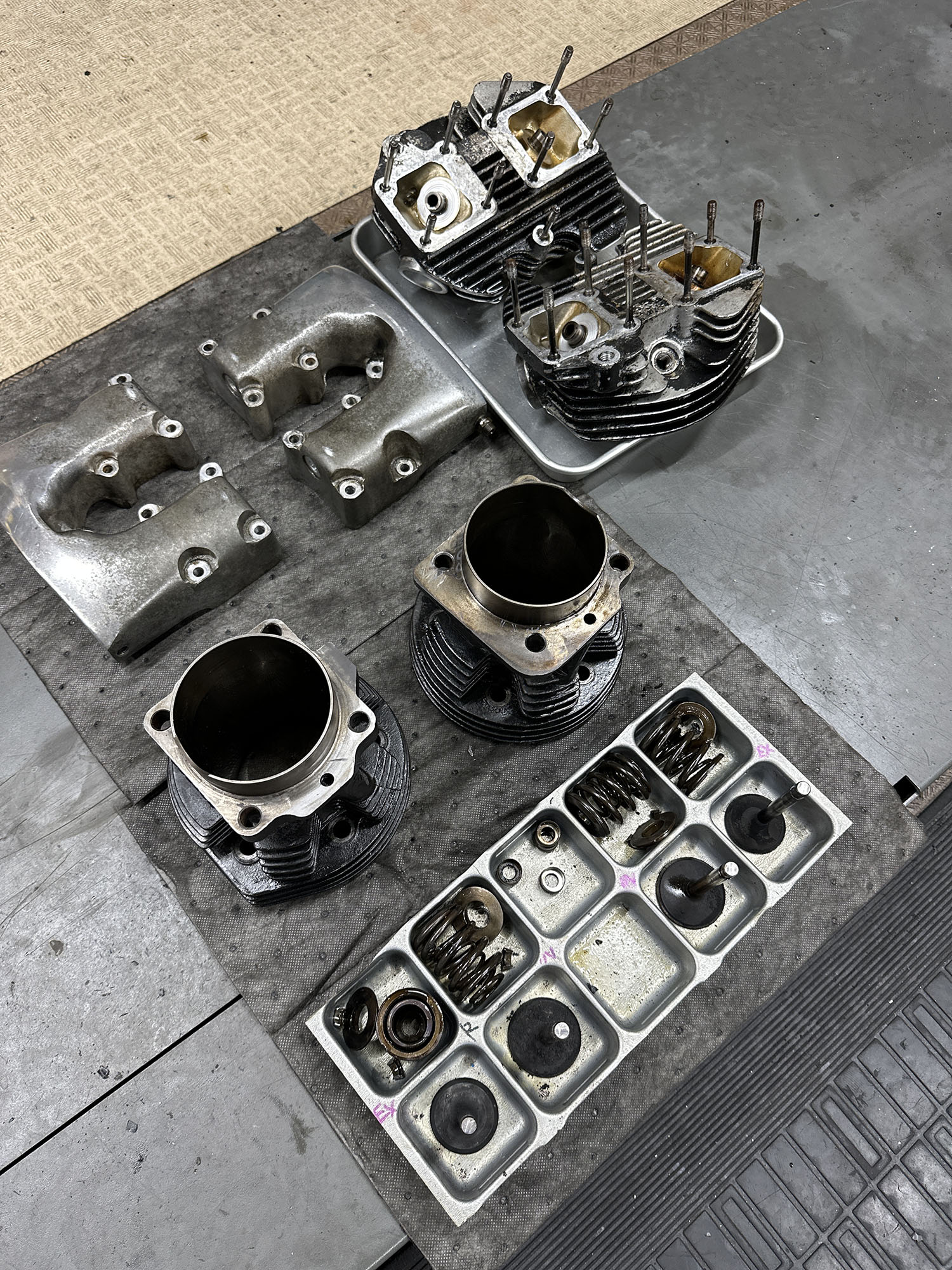 エンジンの腰上OH。マーレピストンへの交換と、バルブ周りのやり直し、シートカット。シリンダーヘッドの平面研磨など。