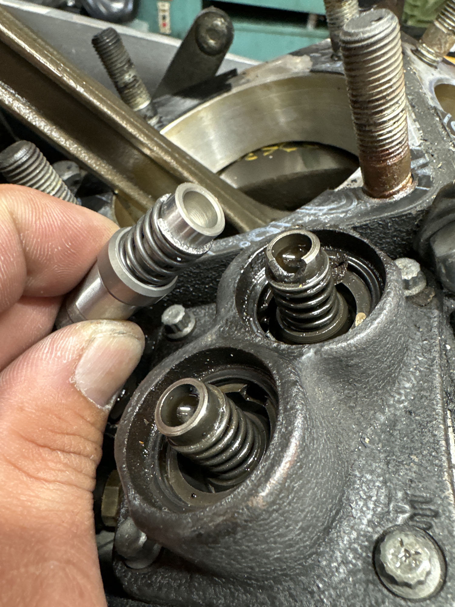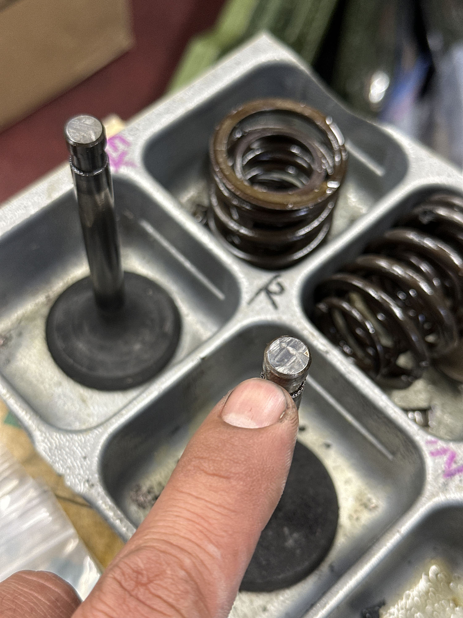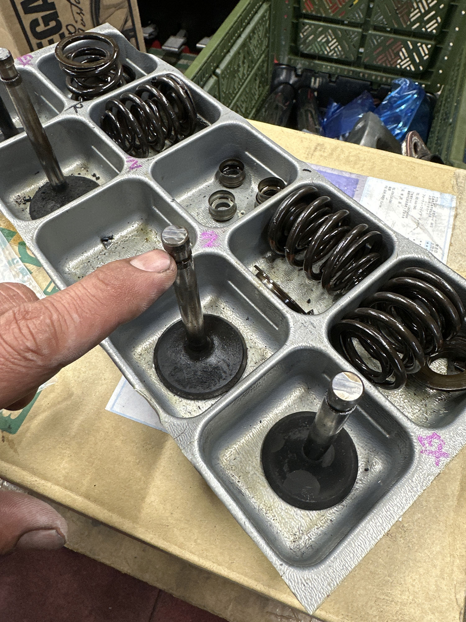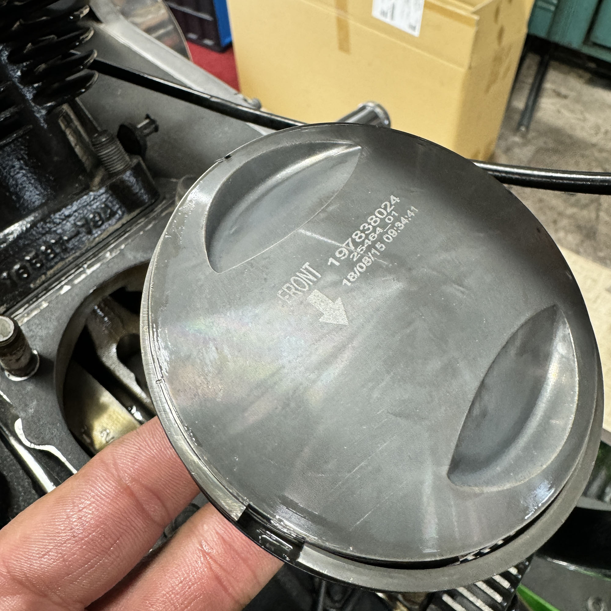 エンジンの腰上OH。マーレピストンへの交換と、バルブ周りのやり直し、シートカット。シリンダーヘッドの平面研磨など。